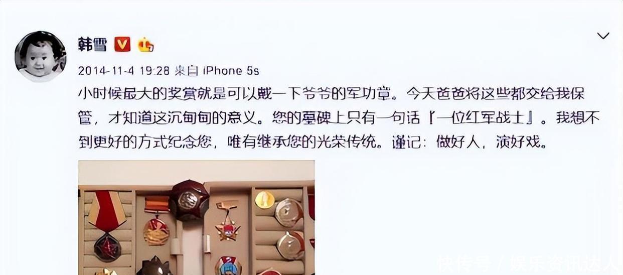 韩雪在娱乐圈是特殊的存在。别的女星争资源、抢曝光,她却连吻戏都拒拍,还能年年上春晚。2014年她晒出爷爷枚军功章直接冲上热搜——独立自由勋章、解放勋章、八一奖章……每一枚都代表一段峥嵘岁月。她爷爷韩怀智曾任解放军副总参谋长,家族多人身居要职。
